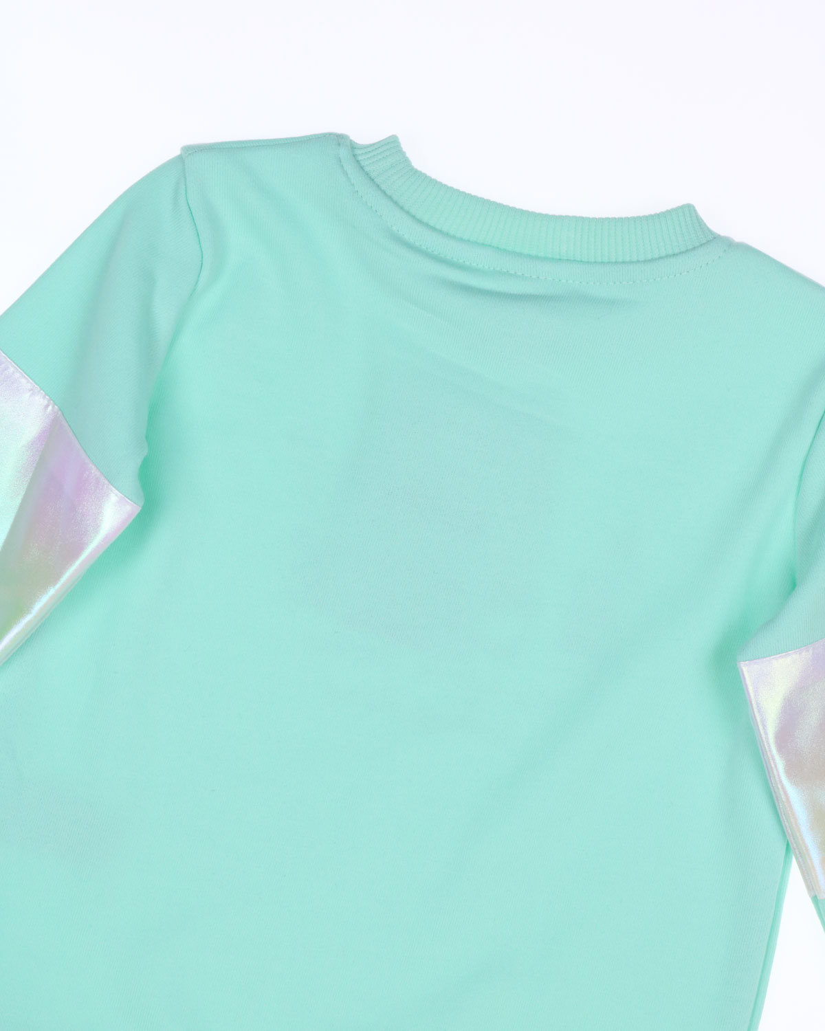 Костюм для девочки выполнен из трикотажа футер (петля). Свитшот на шнурке, рукава оформлены перламутровыми вставками. Лосины плотные  с легким начесом.