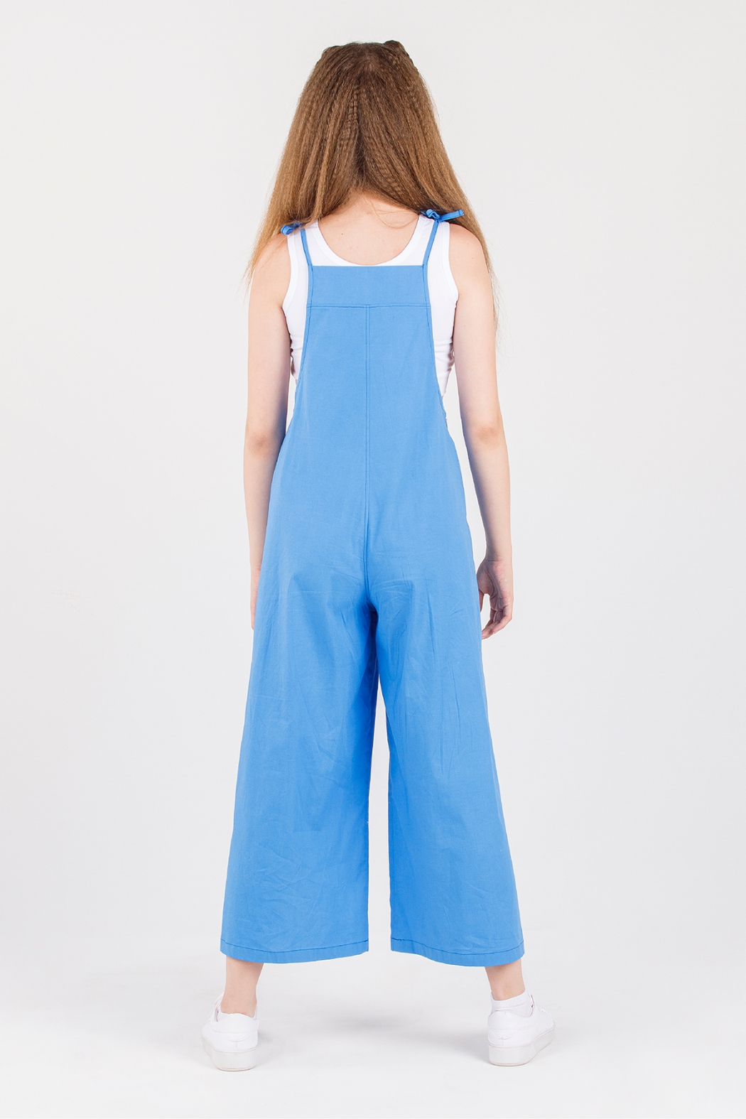 Оригинальный хлопковый комбинезон Dmb на тонких бретелях. Комплект  дополняет трикотажный, белый кроп-топ с широкими  лямками.