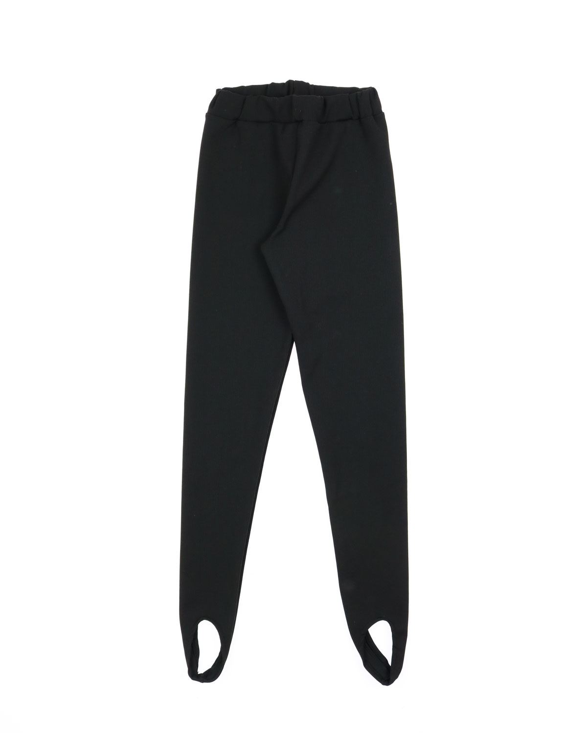 Леггинсы со штрипками. Черные лосины с эластичным поясом-резинкой. Широкие штрипки по низу. Смесовая ткань "рубчик" с матовой фактурой.