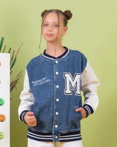 Стильный бомбер Dmb для девочки оптом. Модель выполнена из плотной джинсы, застегивается на кнопки.