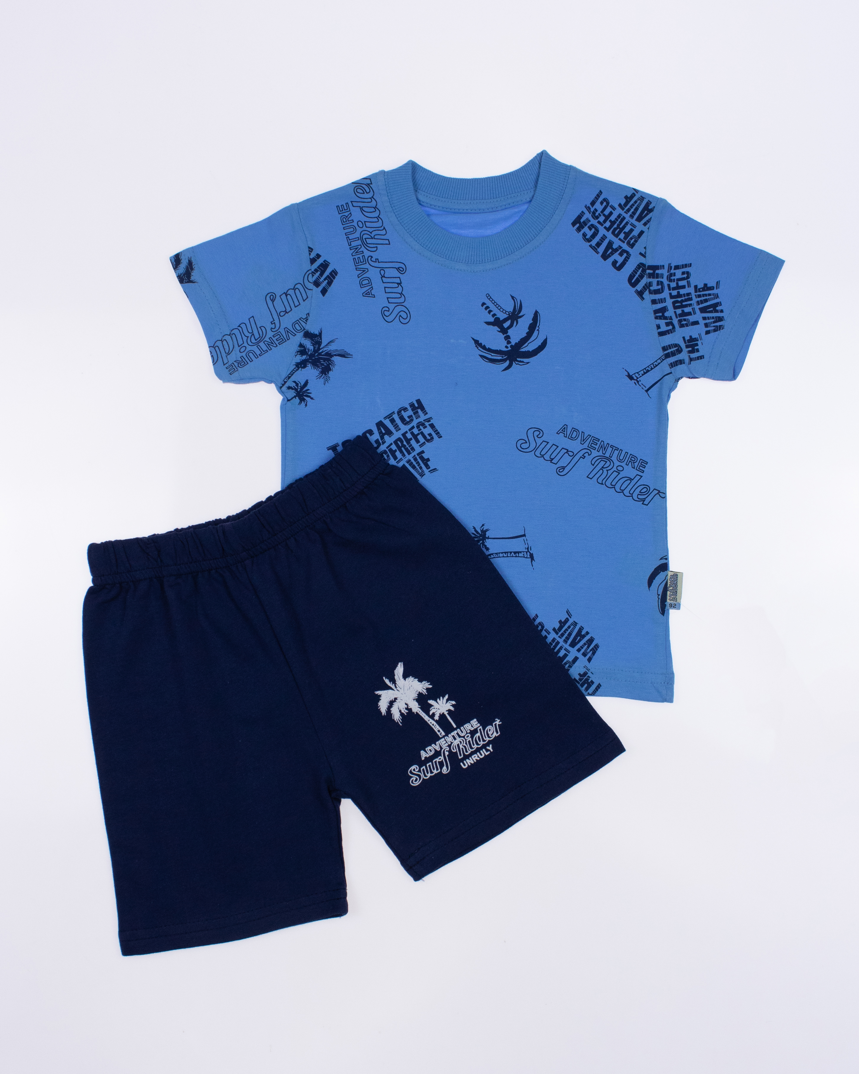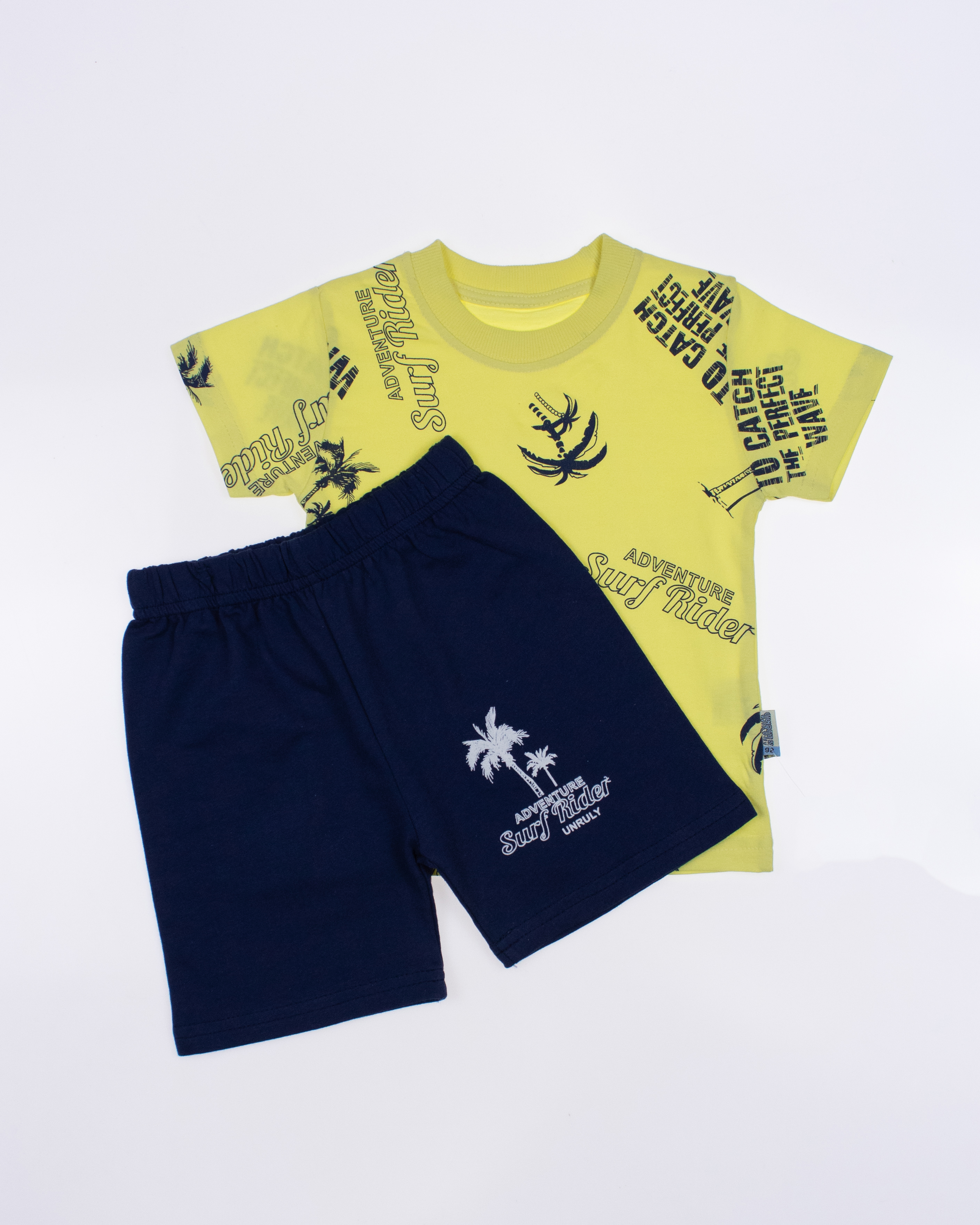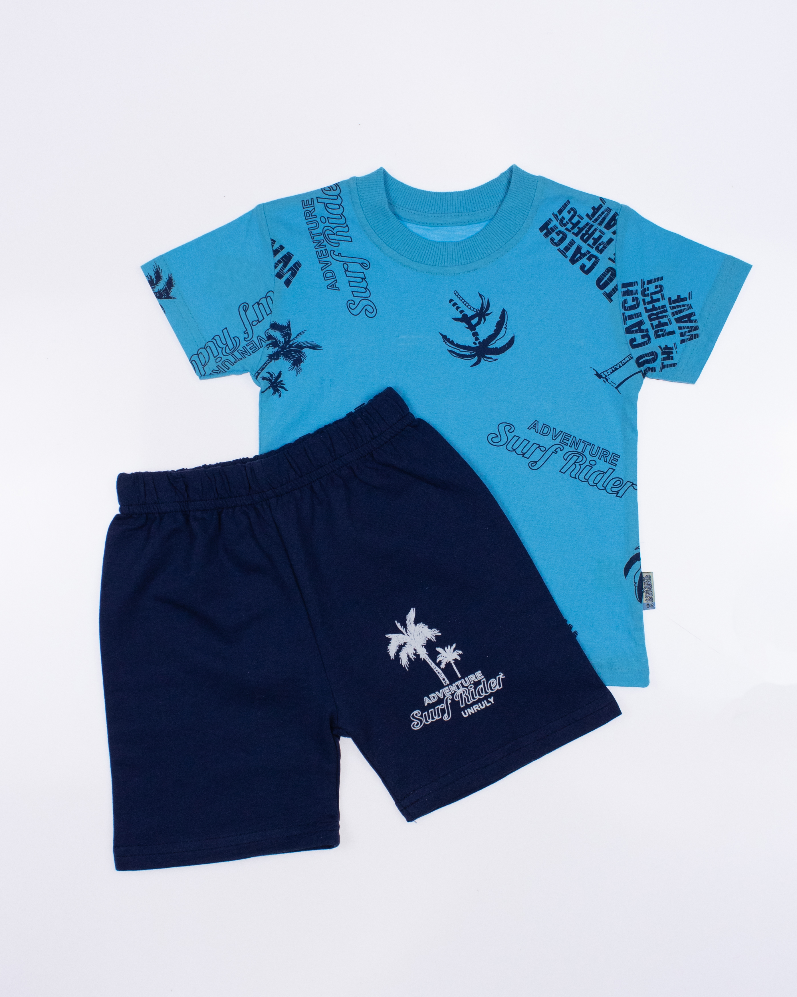 Костюм Unruly для мальчика оптом, состоит из футболки и шорт. Модель выполнена из хлопкового полотна и оформлена печатным принтом. Футболка прямого кроя, с округлым вырезом горловины. Ткань кулирная гладь.