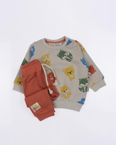 Мы предлагаем оптовые продажи детской одежды производства Турция. Хлопковый костюм  MINIWORLD выполнен из футер (петля), что гарантирует комфорт и безопасность для самых маленьких детей. Свитшот имеет удобную застежку-кнопки на плече, что облегчит процесс надевания и снятия одежды. Штанишки с мягкими манжетами на эластичном поясе идеально подходят для ношения с подгузником, обеспечивая свободу движений и комфорт. Детский милый принт на костюме поможет развить фантазию и воображение ребенка, делая его образ ярким и запоминающимся. Костюм MINIWORLD - отличный выбор для маленьких модников и их заботливых родителей. Не упустите возможность приобрести этот уникальный товар оптом по выгодной цене!