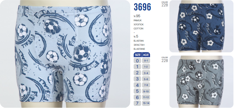 Трусы-боксеры для мальчика выполнены из качественного хлопка 95% с добавлением эластана 5%. В составе только натуральный хлопок с добавлением эластана для придания прочности и эластичности. Трусы-боксеры спереди имеют гладкие швы флэтлок, которые очень деликатные, аккуратные и не натирают кожу. Эластичная резинка, хорошо тянется и не деформируется. Ткань не скатывается, не выцветает и сохраняет форму после многочисленных стирок.