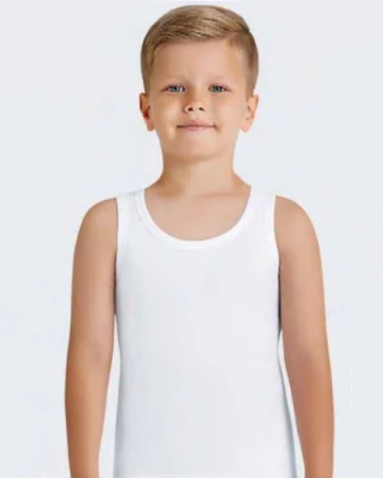 Майка  белая  BAYKAR для мальчика  изготовлена из однотонного трикотажа. Прекрасно сидит на теле, точно повторяя силуэт за счет прилегающего кроя. Незаметна под спортивным костюмом, рубашкой, толстовкой. Подойдет для круглогодичного использования. Трикотажный материал из 95% хлопка приятен к телу, хорошо тянется и держит форму. Благодаря натуральному и гипоаллергенному составу впитывает влагу, предотвращает появление аллергии на нежной коже.
