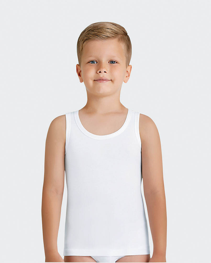 Майка  белая  BAYKAR для мальчика  изготовлена из однотонного трикотажа, бесшовная. Прекрасно сидит на теле, точно повторяя силуэт за счет прилегающего кроя. Незаметна под футболкой, спортивным костюмом, рубашкой, толстовкой. Подойдет для круглогодичного использования. Трикотажный материал из 95% хлопка приятен к телу, хорошо тянется и держит форму. Благодаря натуральному и гипоаллергенному составу впитывает влагу, предотвращает появление аллергии на нежной коже.
